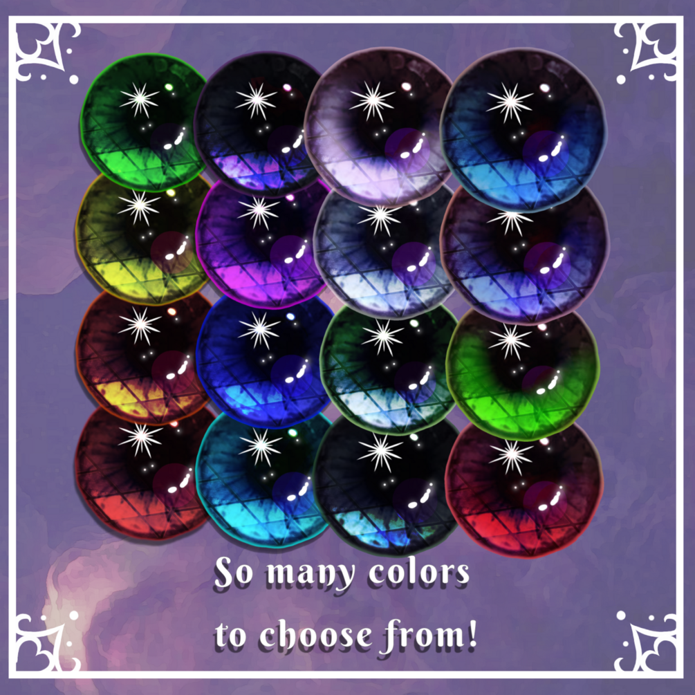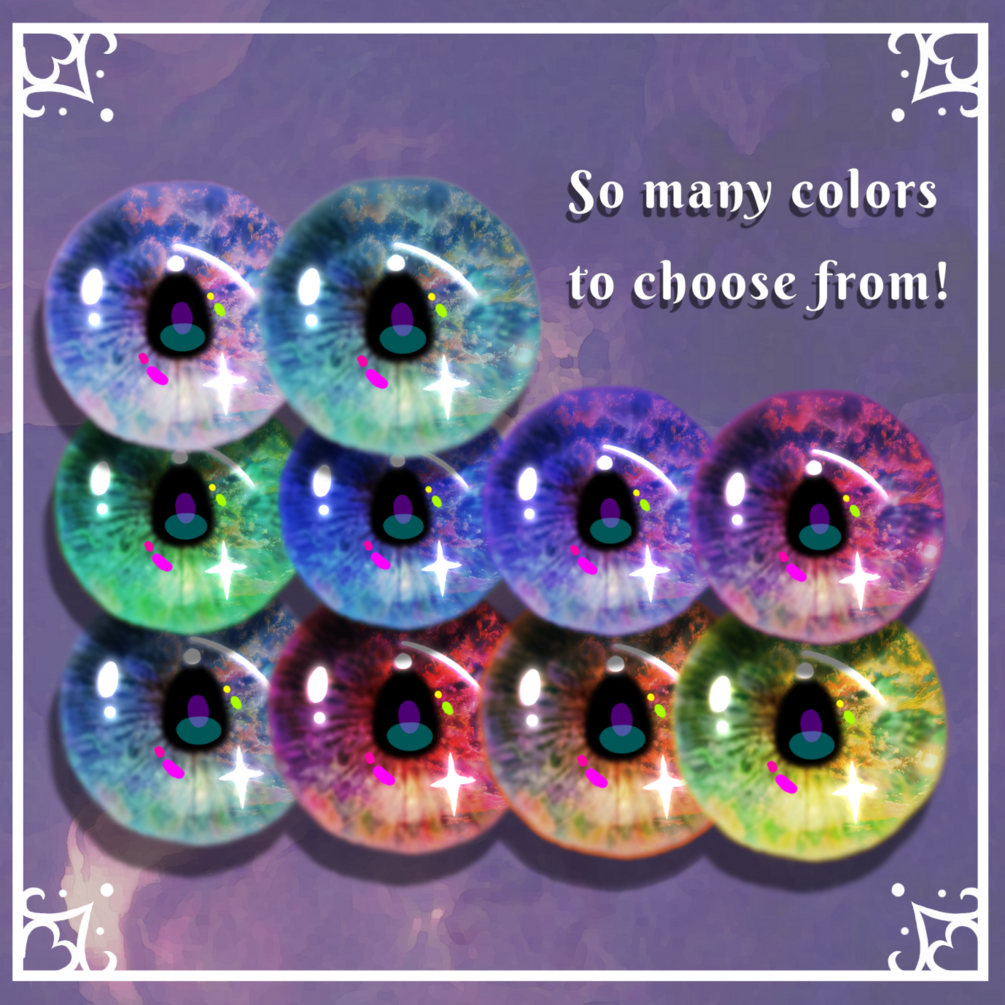 You get a transparent PNGs of the eye textures, there over 30 textures of a variety of colors! Fun to mix and match with and can be easily edited onto any head base!