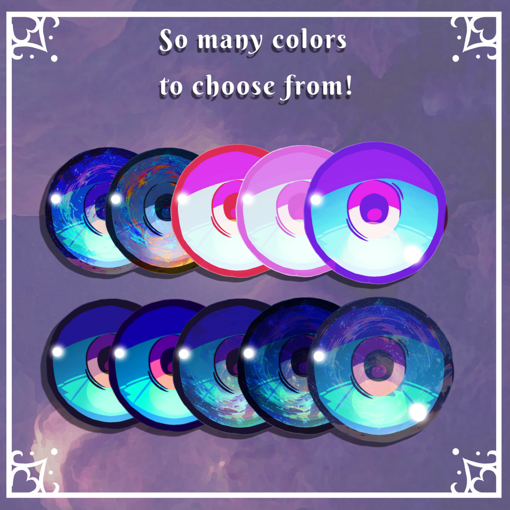 You get a transparent PNGs of the eye textures, there over 22 textures of a variety of colors! Fun to mix and match with and can be easily edited onto any head base!